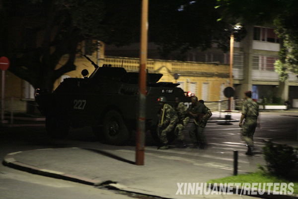 3月16日,馬達加斯加武裝部隊接近位于塔那那利佛市的一處總統府。當晚,馬達加斯加武裝部隊占領了位于塔那那利佛市中心的總統府,接管過程中發生沖突,總統府附近的中央銀行大樓遭到炮擊。 新華社/路透