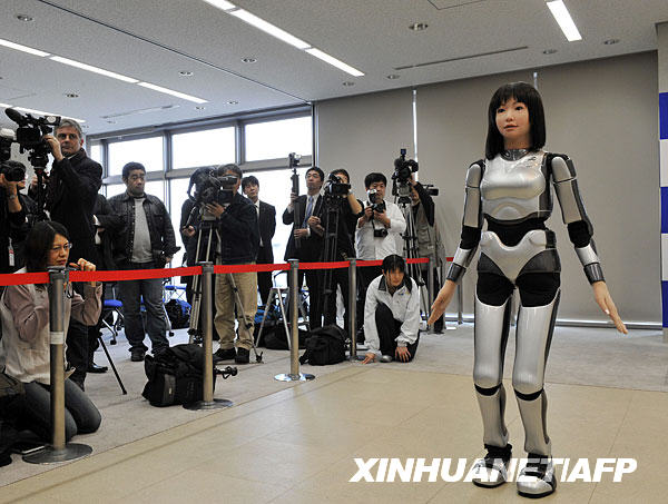 3月16日,研究人員在日本茨城縣筑波市向媒體展示代號為“HRP-4C”的機器人。HRP-4C“身高”1.58米,“體重”含電池43公斤,有一張女性面孔,大眼睛,鼻子小巧,充電一次可行動約20分鐘。它能說話,會做出多種表情。該機器人將于3月23日在東京登臺進行時裝展示。新華社/法新