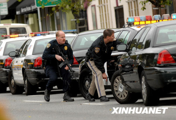 奧克蘭市警方21日宣布,兩名值勤警察當天在一個交通路口突遭數(shù)名槍手射擊,傷勢嚴重。在隨即展開的圍捕行動中,警察和槍手發(fā)生槍戰(zhàn)并最終將槍手擊斃。新華社/美聯(lián)