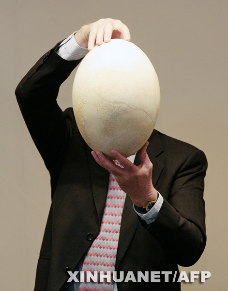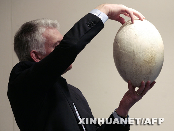 3月25日,一名男子在英國倫敦展示一枚據(jù)稱是“世界上最大的蛋”。這枚由已經(jīng)滅絕的馬達(dá)加斯加象鳥在十七世紀(jì)產(chǎn)下的蛋,將在當(dāng)天舉行的切爾西古董展上出售,標(biāo)價5000英鎊(約合7340美元)。新華社/法新