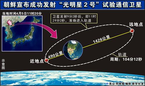 圖表:朝鮮宣布成功發(fā)射“光明星2號”試驗(yàn)通信衛(wèi)星 新華社發(fā)