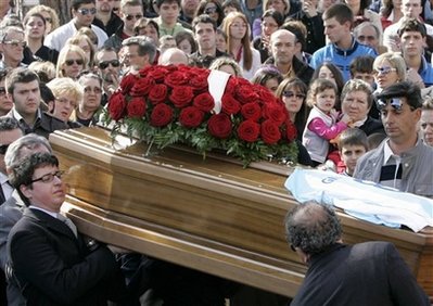 意大利中部城市拉奎拉的居民8日為地震中遇難的人舉行了首批葬禮。由于震區目前余震不斷,所以從廢墟中挖掘更多幸存者的希望越來越小。星期五將在拉奎拉為地震死難者舉行一個集體葬禮,這一天意大利全國將為死難者哀悼。