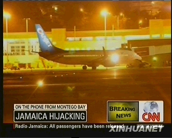 新華網(wǎng)墨西哥城4月20日電 金斯敦消息:牙買加蒙特哥貝港桑斯特國(guó)際機(jī)場(chǎng)19日晚發(fā)生劫持人質(zhì)事件,有7人被劫持者扣押在一架飛機(jī)內(nèi)。