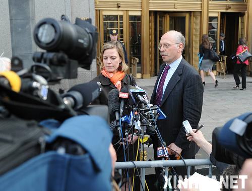 4月21日,在紐約一家聯邦法院外,索馬里海盜阿卜迪瓦里的兩位辯護律師接受媒體采訪。當日,被美國海軍俘獲的索馬里海盜阿卜迪瓦里在紐約一家聯邦法院出庭受審。據信,阿卜迪瓦里是一個世紀以來首個在美國受審的海盜嫌疑人,如果定罪,他可能被判處終身監禁。新華社記者申宏攝