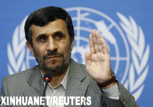 4月20日,在瑞士日內(nèi)瓦,伊朗總統(tǒng)艾哈邁迪-內(nèi)賈德出席聯(lián)合國德班審議會議。艾哈邁迪-內(nèi)賈德當日在這里表示,歡迎美國政府作出的改變對伊政策的姿態(tài),但等待美國政策發(fā)生“實際的變化”。 新華社/路透