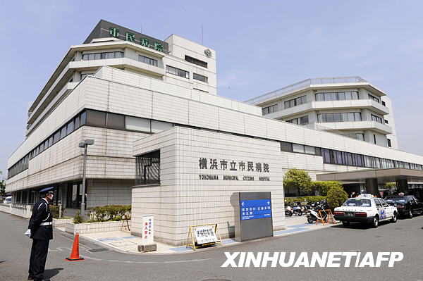 5月1日,一名安保人員在日本橫濱市立市民醫院外值勤。新華社/法新