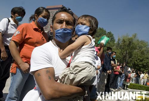 4月30日,在墨西哥首都墨西哥城,群眾排隊等候進行人感染A(H1N1)型流感病毒的檢測。墨西哥衛生部從28日起開始派出流動醫療車對與疑似患者接觸過的家屬及周邊居民進行人感染A(H1N1)型流感病毒的快速檢測。 新華社發(戴維攝)