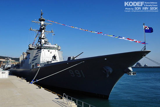 韓國海軍首艘宙斯盾級(jí)防空驅(qū)逐艦“文武大王”號(hào) 圖片來源:千龍網(wǎng)