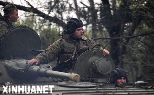 5月5日,在格魯吉亞首都第比利斯附近,格軍坦克向發(fā)生叛亂的穆赫羅瓦尼內(nèi)務(wù)部隊(duì)軍營進(jìn)發(fā)。格魯吉亞內(nèi)務(wù)部5日宣布,格強(qiáng)力部門當(dāng)天聯(lián)合挫敗一起由格高級軍官策劃的軍事叛亂,該叛亂旨在破壞即將于6日舉行的北約軍事演習(xí),并推翻由總統(tǒng)薩卡什維利領(lǐng)導(dǎo)的現(xiàn)政權(quán)。 新華社記者郭群攝