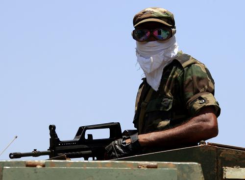 4月26日,斯里蘭卡反政府武裝泰米爾伊拉姆猛虎解放組織(猛虎組織)宣布單方面停火。這是4月24日,在斯里蘭卡北部“安全區”附近的普杜馬塔蘭小鎮,一名政府軍士兵站在裝甲車上。(新華社/路透)