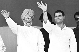 5月11日,印度現(xiàn)任總理曼莫漢·辛格與國大黨秘書長拉胡爾·甘地在阿姆利則市與支持者見面。