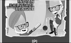 印度網(wǎng)絡(luò)上一款名為“印度政治聯(lián)賽”的游戲借印度板球,展現(xiàn)曼莫漢·辛格(左)和阿德瓦尼之間的“對抗”。