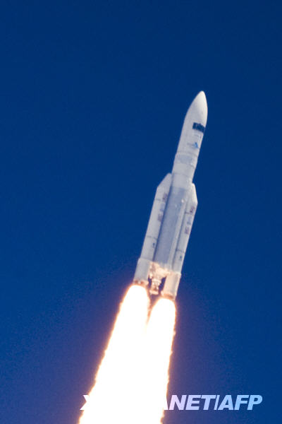 5月14日,在法屬圭亞那庫(kù)魯航天中心,歐洲阿麗亞娜5-ECA型火箭發(fā)射升空。格林尼治時(shí)間14日13時(shí)12分(北京時(shí)間14日21時(shí)12分),歐洲阿麗亞娜5-ECA型火箭攜帶歐洲航天局兩顆科學(xué)探測(cè)衛(wèi)星“赫歇爾”和“普朗克”,從法屬圭亞那庫(kù)魯航天中心發(fā)射升空。新華社/法新