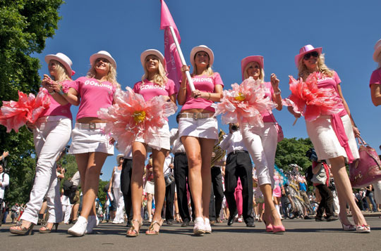 5月31日,拉脫維亞舉行了一場(chǎng)金發(fā)美女大游行。約500個(gè)金發(fā)碧眼的美女帶著甜美的笑容參加游行,欲沖淡金融危機(jī)帶來的憂郁情緒。