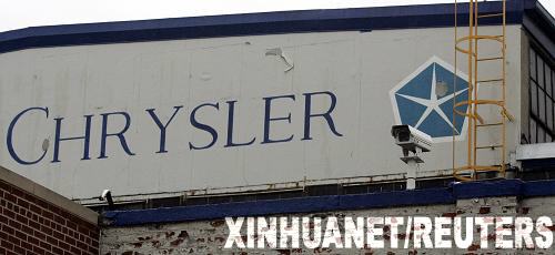 這是4月30日在美國密歇根州的底特律拍攝的克萊斯勒汽車公司標志。陷入困境的美國第三大汽車廠商克萊斯勒公司當日發表聲明宣布申請破產保護。與此同時,克萊斯勒正式宣布與意大利汽車制造商菲亞特公司結盟。(新華社/路透)
