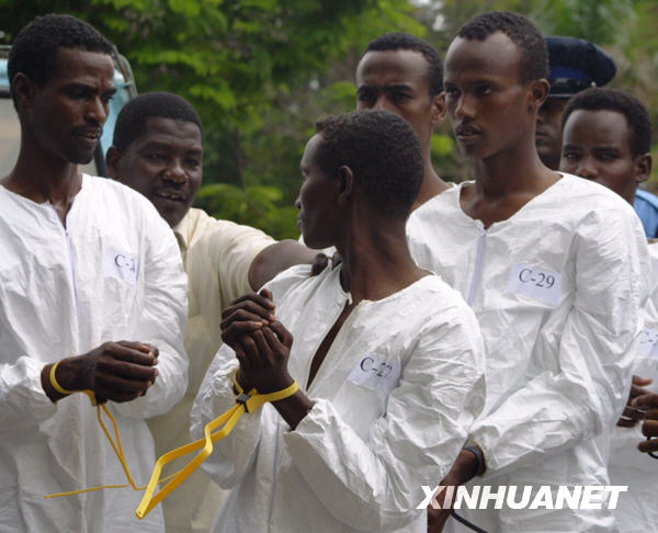 這是肯尼亞本周以來(lái)接收的第二批索馬里海盜嫌疑人。8日,瑞典海軍租用一架飛機(jī)將7名嫌疑人從吉布提運(yùn)送至蒙巴薩交給肯尼亞警方。