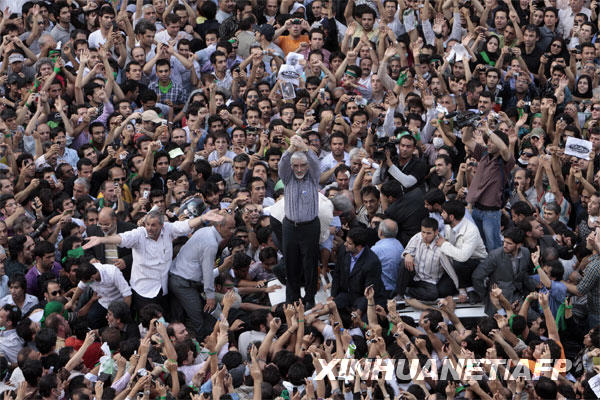 6月15日,伊朗前總理穆薩維在首都德黑蘭參加其支持者舉行的大型集會。據伊朗新聞電視臺當日報道,在伊朗第10屆總統選舉中失利的伊朗改革派總統候選人、前總理穆薩維當日在其支持者舉行的大型集會上說,他已經作好參加重新投票的準備。 新華社/法新