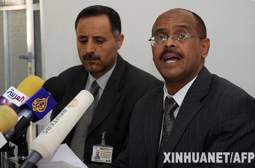 6月30日,也門民航局副局長穆罕默德·阿卜杜勒—拉赫曼·阿卜杜勒—卡迪爾(右)在也門首都薩那參加記者招待會。也門民航局當日說,搜救小組已在印度洋島國科摩羅附近海域發現失事客機的遇難者遺體。也門航空公司一架客機6月30日晨在即將飛抵印度洋島國科摩羅國際機場時墜入印度洋,當時機上有150名乘客。 新華社/法新