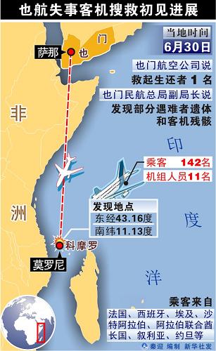 也航一架空中客車A310-300型客機于當地時間6月30日在印度洋島國科摩羅附近海域墜毀,機上載有142名乘客和11名機組成員。