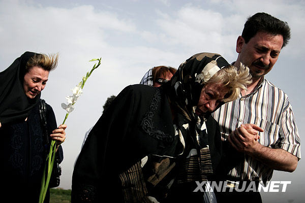 7月16日,部分遇難者的親屬在伊朗西北部城市加茲溫附近的墜機現場悼念親人。一架由伊朗首都德黑蘭飛往亞美尼亞首都埃里溫的伊朗客機15日在加茲溫附近墜毀,機上168人全部遇難。新華社發(哈拉比薩斯攝)