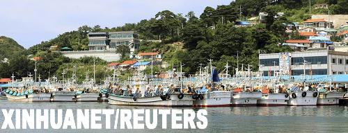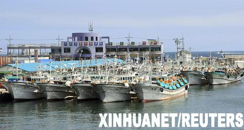 7月30日,漁船停靠在首爾東北約330公里的一個港口。韓國聯合通訊社當日援引韓國軍方人士的話報道,一艘韓國漁船當天上午6時30左右在江原道以東海面越過南北海朝韓兩國分界線進入朝鮮水域,被朝鮮警備艇拖走扣留。新華社/路透