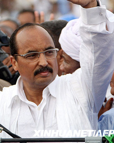 7月19日,毛里塔尼亞內政部宣布,前“最高國務委員會”軍政權領導人穆罕默德·烏爾德·阿卜杜勒-阿齊茲在18日舉行的總統選舉中獲得52.58%有效選票,贏得總統選舉。這是2009年7月17日,阿齊茲在毛里塔尼亞首都努瓦克肖特參加競選集會的資料照片。新華社/法新
