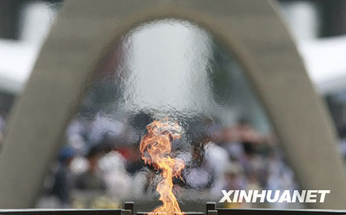 8月5日,在日本廣島和平紀念公園,人們在永不熄滅的和平之火前祈禱。日本是迄今世界上唯一一個遭受過原子彈轟炸的國家。新華社記者任正來攝