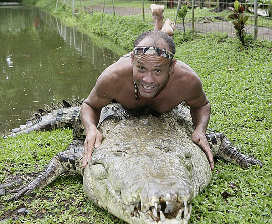 據(jù)英國媒體8月16日報道,除了人被鱷魚吃掉或殺掉鱷魚以外,你還能想象二者之間發(fā)生什么故事么?哥斯達(dá)黎加漁民Chito告訴你,鱷魚還可以成為人的寵物!真是駭人聽聞!但事實(shí)的確如此。20年前,Chito在一個湖里搭救了一條因吞食奶牛而被當(dāng)?shù)剞r(nóng)民射中頭部的鱷魚Pocho。當(dāng)時的它已經(jīng)奄奄一息,好在經(jīng)過Chito的細(xì)心照料,Pocho逐漸恢復(fù)了健康。之后經(jīng)過10年的磨合,Chito和Pocho開始成為了朋友,二者經(jīng)常在一起嬉戲玩耍。如今,大量來自世界各地的游客也紛紛前去見證這一非凡的人鱷情緣。