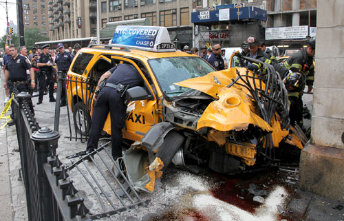 美國紐約“瘋狂”出租車撞上地鐵站(組圖)