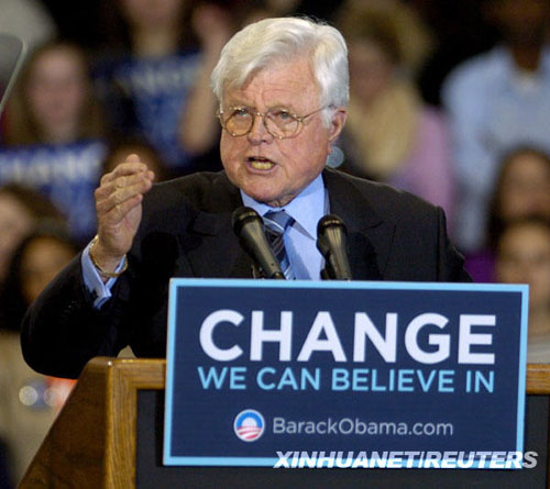 據(jù)美國媒體報道,美國聯(lián)邦參議員、前總統(tǒng)約翰·肯尼迪之弟愛德華·肯尼迪于8月25日去世,享年77歲。這是2008年1月28日拍攝的愛德華·肯尼迪在華盛頓為奧巴馬競選造勢的資料照片。新華社/路透