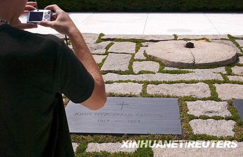 8月26日,在美國弗吉尼亞州的阿靈頓國家公墓,一名悼念者在美國前總統(tǒng)約翰·F·肯尼迪的墓前拍照。新華社/路透