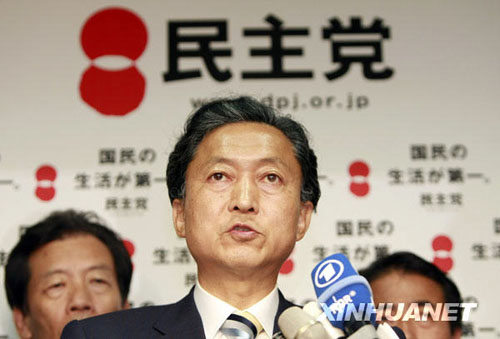 8月31日,在日本東京民主黨總部,民主黨黨首鳩山由紀(jì)夫(前)在結(jié)束與黨內(nèi)高層舉行的會(huì)議后,接受媒體訪問(wèn)。新華社記者任正來(lái)攝