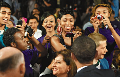 在演講中,奧巴馬要求學(xué)生刻苦用功、設(shè)立目標(biāo)、擔(dān)負(fù)起個(gè)人教育的責(zé)任。 在答問環(huán)節(jié),一名學(xué)生問他對(duì)想當(dāng)上美國(guó)總統(tǒng)的人有何忠告?奧巴馬告誡說,要很小心貼在Facebook上的個(gè)人資料,因?yàn)槟贻p時(shí)會(huì)犯錯(cuò),做蠢事,到長(zhǎng)大找工作時(shí)就會(huì)有人上網(wǎng)搜索你曾經(jīng)貼到網(wǎng)上的東西,“在YouTube時(shí)代,無論你做什么,將來都可能再被提起”。