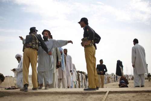 來自巴基斯坦瓦濟里斯坦的部族民眾在阿富汗邊界檢查站接受檢查。