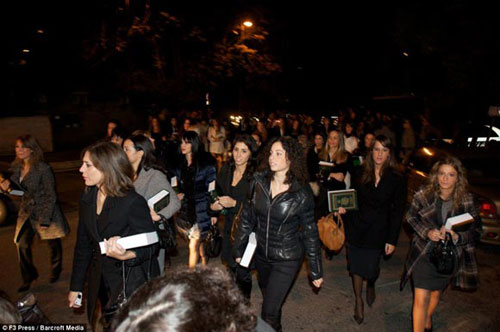 一位參加晚會的女子表示,“他告訴我們一些關(guān)于耶穌的事,他說耶穌并沒有真的被釘上十字架,他請我們閱讀《可蘭經(jīng)》!碑斖頃Y(jié)束,與會女子得到的小禮物,就是一本《可蘭經(jīng)》、一本卡扎菲寫的書,以及100歐元的出場費。