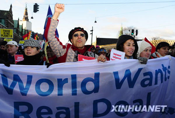 12月12日,在丹麥?zhǔn)锥几绫竟涡姓呦蚵?lián)合國氣候變化大會(huì)會(huì)場貝拉會(huì)展中心進(jìn)發(fā)。新華社記者曾毅攝