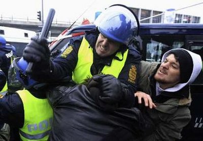 哥本哈根警方發(fā)言人拉森說,已有260位抗議人士在與警方?jīng)_突時遭拘捕,他并強調(diào),沒有人能闖入貝拉會展中心。