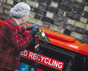 “女王”將酒瓶放進回收箱。