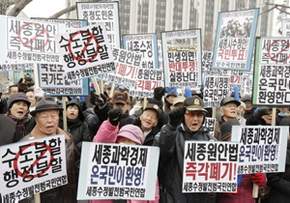 韓國上任政府為減輕首都首爾的發展壓力,致力將南面的世宗市打造成全新政治之都,平衡地區發展。然而李明博政府前年上臺后一直表明遷都將導致“行政效率低下”,反對遷都。