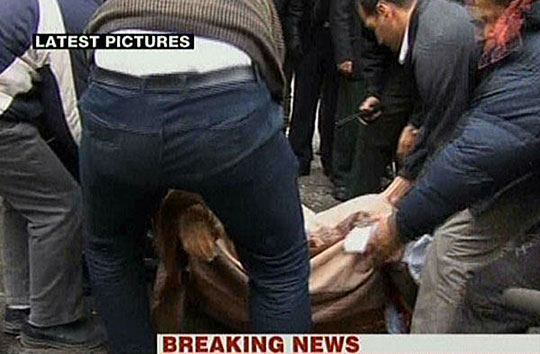 圖為遇難者的遺體被抬上擔架。(電視截圖)