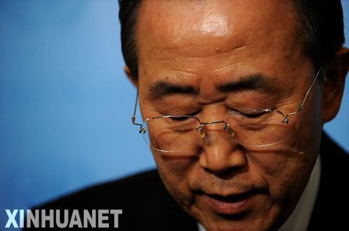 1月13日,聯(lián)合國秘書長潘基文在紐約聯(lián)合國總部向媒體通報聯(lián)合國人員在海地地震中的傷亡情況。新華社記者申宏攝