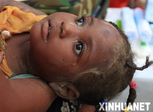1月14日,在海地首都太子港,一名小朋友躺在媽媽的懷里等候接受治療。當日,中國國際救援隊的醫護人員來到海地總理府前的廣場,為在這里避難的群眾進行診療,開展醫療救助。加勒比島國海地當地時間12日下午發生里氏7.3級強烈地震,首都太子港大量房屋倒塌,交通通訊中斷,人員傷亡情況至今難以統計,海地領導人估計死亡人數可能超過數萬人。新華社記者邢廣利攝
