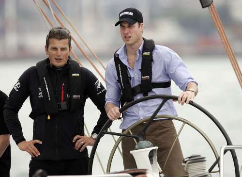 威廉王子(右)訪問新西蘭期間在奧克蘭乘游艇出海。