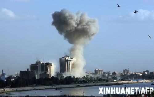 1月25日,在伊拉克首都巴格達的巴勒斯坦飯店附近,爆炸區(qū)域濃煙升起。新華社/法新