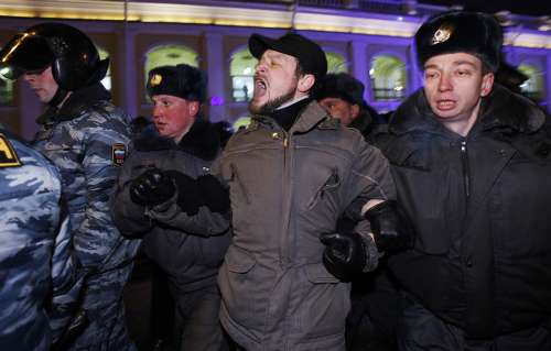 在大城市圣彼得堡,也有群眾在市中心舉行類似的集會,宣泄對政府的不滿。警方迅速采取行動(dòng),迫使集會終止。目擊者說,警察采用武力,揮動(dòng)警棍打示威者。