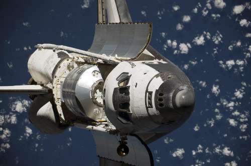美國“發現”號航天飛機在太空中的英姿。(資料圖片)