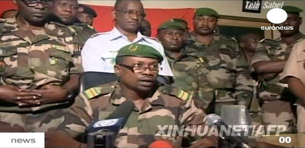資料圖片:這張2010年2月19日的電視截圖顯示,尼日爾政變軍隊發言人阿卜杜勒-卡里姆·古可耶在尼日爾首都尼亞美發表電視講話。西非國家尼日爾局勢突變。位于首都尼亞美的總統府18日下午發生持續約一小時的槍戰,軍隊士兵攻入總統府,帶走總統坦賈。政變軍人當晚宣布,中止憲法并解散各機構。聯合國秘書長潘基文、非洲聯盟以及西非國家經濟共同體(西共體)對尼日爾事態表示關切。新華社/法新