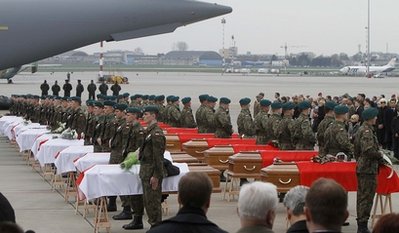 波蘭華沙機場,衛兵守護從莫斯科運回的空難遇難者靈柩