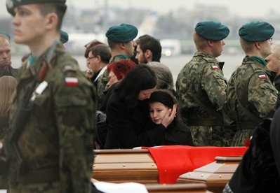 合外電報道,16日,波蘭總統專機墜機事件當中的遇難者遺體超過半數——包括總統卡欽斯基夫婦、波蘭最后一位流亡總統卡丘羅夫斯基在內的至少67人的遺體已被運回波蘭。到目前為止已有71名遇難者遺體被成功確認身份。