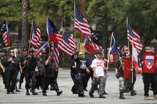 大約50名隸屬新納粹白人優越主義組織“國家社會主義運動”的成員在場揮動美國國旗及張開印有納粹徽號的橫額,進行大約一小時集會。他們清一色的黑衣、黑帽,并將矛頭指向墨西哥裔與南美裔移民,甚至挑釁地要他們“說大家聽得懂的英文”,但他們的聲音被在附近聚集的五百名反示威人士蓋過。